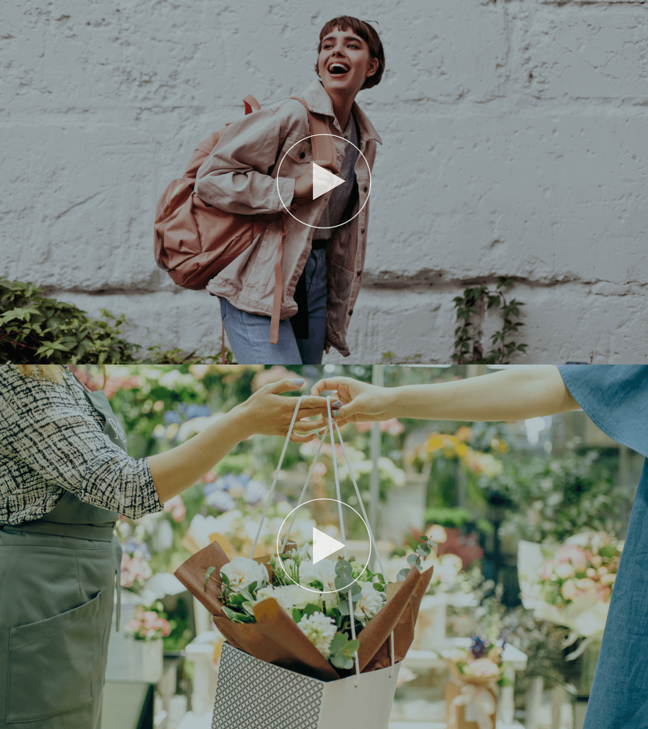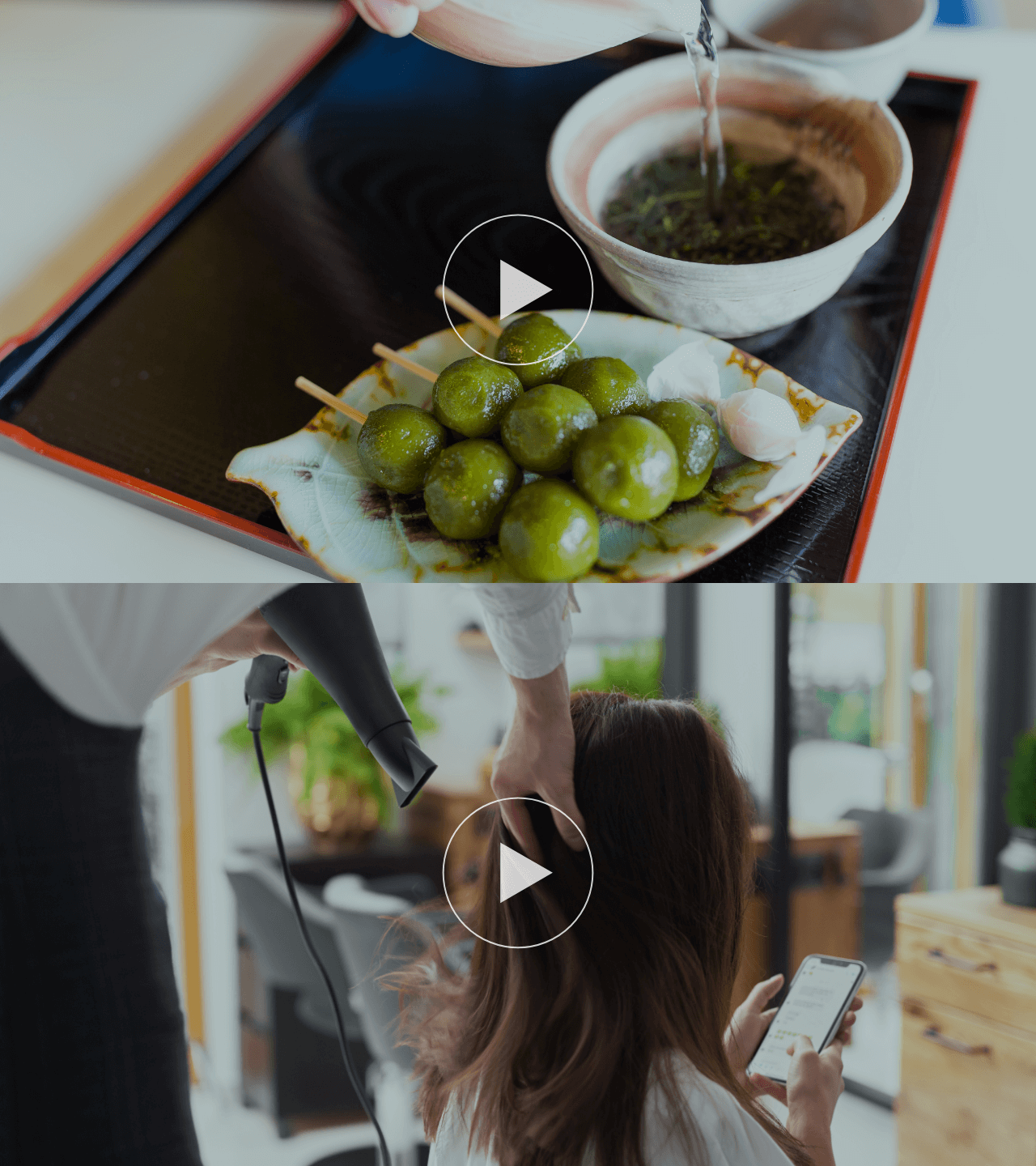 選択したテンプレートをもとに動画を制作します。画像もしくは自社サイトのURLを送るだけで注文することができます。テンプレートを選ばない「おまかせ」も承ります。